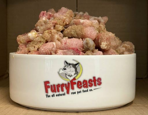 Furry FeastsA balanced 80/10/10 raw dog food made with 50% turkey, 30% pork, 10% turkey bone and 10% turkey liver. This gently blended mixed-protein recipe pro...