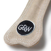 The Bone Buddy has four layers of jute twin stitched over a recycled cotton and jute rope, and then covered in a soft suede, a stylish toy for you and your dog. A great toy for throwing and tugging and dogs can have hours of fun with it.