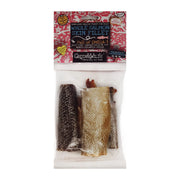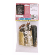 This is a complementary treat for your dog as part of a healthy, balanced diet. Always supervise your dog with any type of chew. No more than one whole salmon skin a day. These treats can be cut into even smaller pieces depending on the size of your dog. Always ensure your dog has plenty of fresh drinking water available. Suitable for dogs from 3 months.