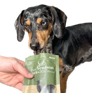 Crafted from the finest ingredients, our Pure Venison Sticks Enriched with Antler Powder provide your dog with a wholesome, nutrient-dense treat that's both delicious and beneficial for their overall health. These treats are made with 99% venison meat, a novel and lean protein source perfect for dogs with food sensitivities, and 1% natural antler powder, which offers unique benefits like calcium and phosphorus to promote strong bones and joints.